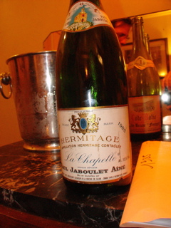 C’est un vin à l’aube de son existence issu des vignes de syrah qui s’épanouissent au sommet de l’hermitage près de la chapelle Saint Christophe, propriété de la famille Jaboulet depuis 1919. D’une robe pourpre foncé bordée de bleu noir, ce vin porte le sceau de sa réputation. Le nez est superbement concentré, complexe et net. Il développe de délicats mais puissants parfums de fruits noirs, de café, de cerise griotte, de poivre blanc, de cuir neuf. Construit sur des tannins classieux” et puissants, d’un équilibre royal, cette “chapelle” saura se faire attendre pour être dans quelques années dignes des plus “fins gosiers” (que nous sommes!).