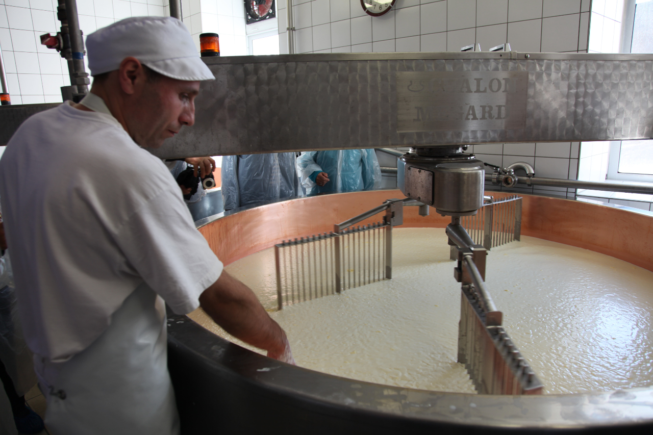 De très bonne heure nous sommes attendus à Bouverans dans une fruitière traditionnelle du Haut-Doubs en compagnie de J-François Marmier. Assister à la création d’une tome de Comté est un moment extraordinaire. Quelle gentillesse, quelle rigueur et quelle précision dans les gestes… Impressionnant !
