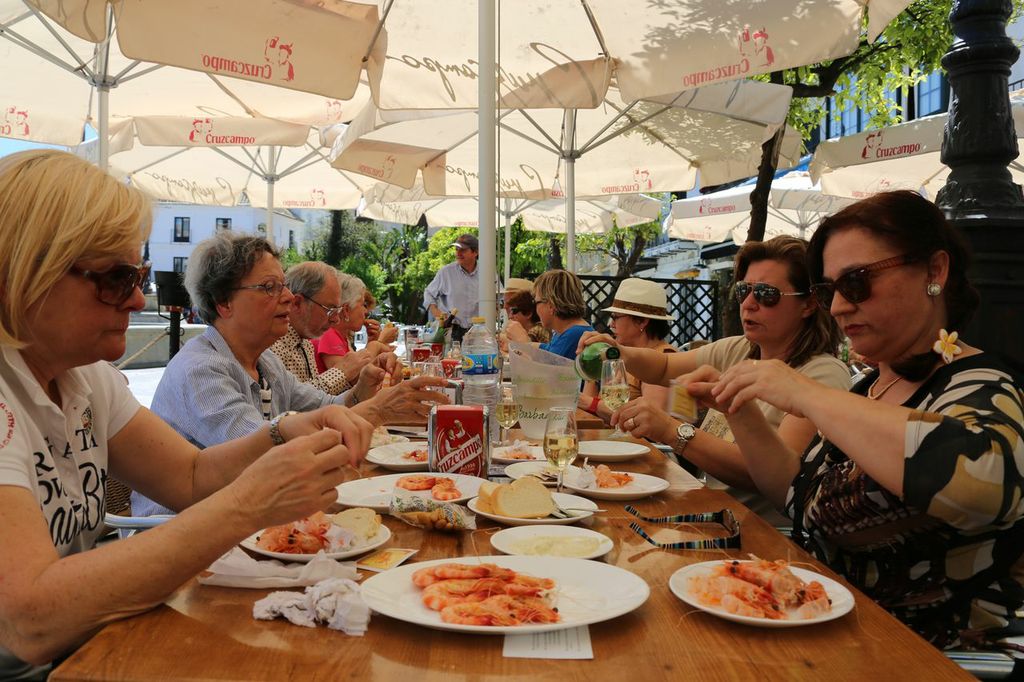Avant un déjeuner typique sur la place du village à la Casa Balbino, nous dégustons la manzanilla…