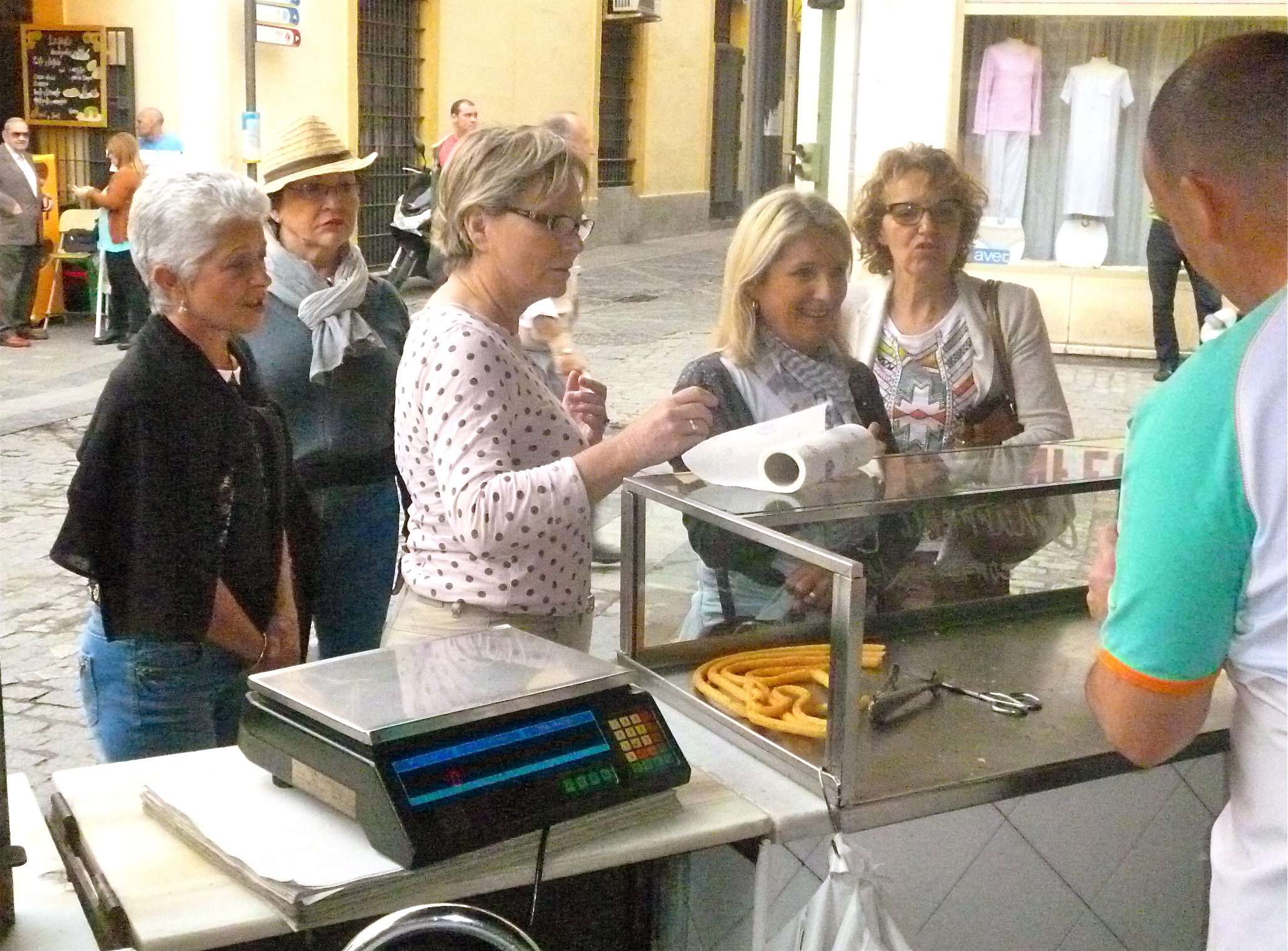 …il faut vous rendre au « Kiosco » en face les halles, pour goûter les « Churros », avec un café au lait (ou un chocolat) sur la place du marché.