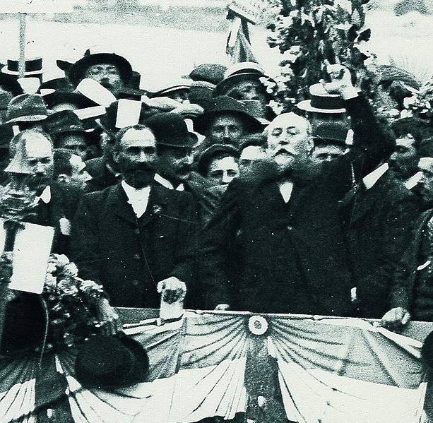 Marcelin Albert (à gauche) et Ernest Ferroul (à droit) lors du meeting de Montpellier en juin 1907