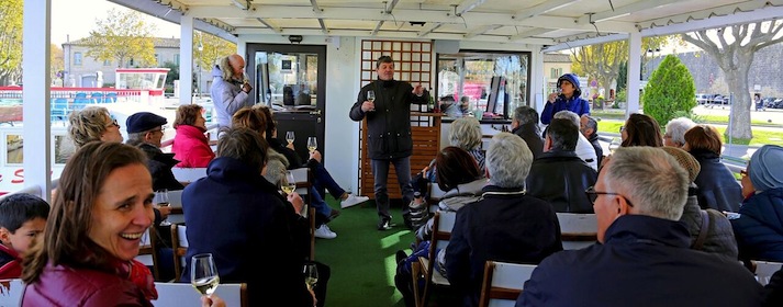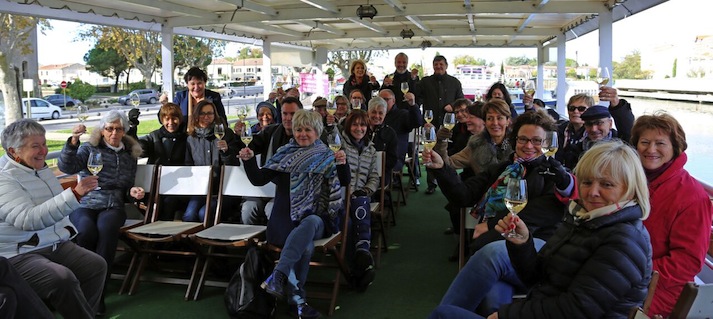 Dans la fraîcheur du matin et dans la bonne humeur, c’est l’embarquement sur la Péniche Isle de Stel à Aigues-Mortes,