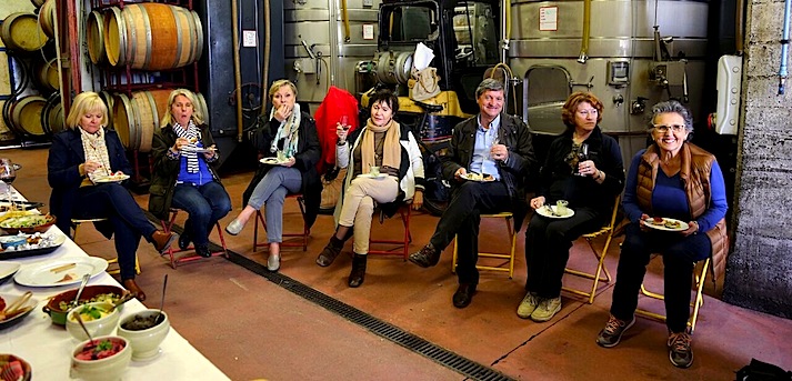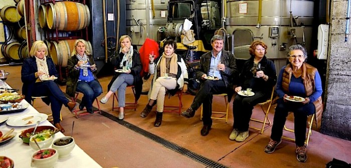 Elise à bien fait les choses puisqu’un buffet dînatoire a été dressé dans la cave (la météo n’autorisant pas un pique-nique de printemps dans le jardin). Tout est excellent et très bien préparé par Mara. Les vins choisis se dégustent admirablement avec les produits de gastronomie locale. Quel Plaisir !