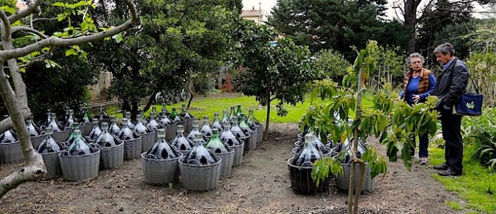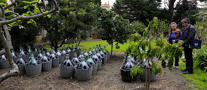 De retour à la cave, nous visitons les lieux et admirons le joli jardin où séjournent les bonbonnes qui feront veillir les Banyuls.