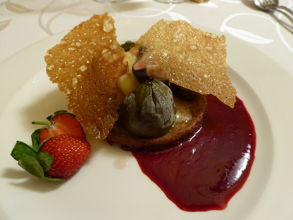 Petit sablé au pain d’épice, figue rôtie et sorbet maracuja