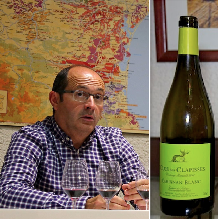 au Clos des Clapisses (Octon) où il cultive avec amour quelques arpents de carignan noirs et blancs.