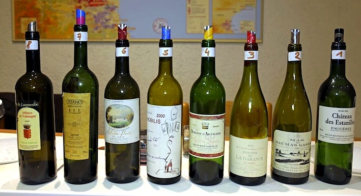 Les bouteilles ont été ouvertes et épaulées trois heures à l’avance. Les vins ont été servis à l’aveugle dans l’ordre suivant, désigné de façon aléatoire. Une cuvée « pirate », vin modeste à petit prix, a été introduite dans la série.