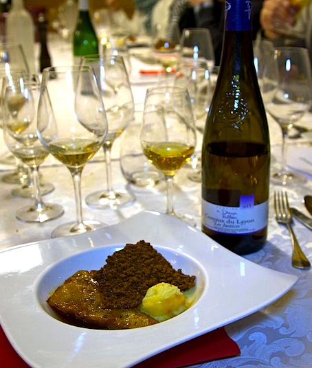 Chardonnay – Crémant de Limoux J. Laurens « Les Graimenous » brut 2016 * * * (*) La couleur jaune pâle semble légèrement tachée, mais les bulles sont fines et nombreuses. Le bouquet superbe évoque par séquences la chair de poire william, le zeste de mandarine, une brassée de fleurs des champs, des notes de pâtisseries… La bouche est élégante, fraîche, très florale, riche en arômes et en rondeur… Un vin hédoniste !