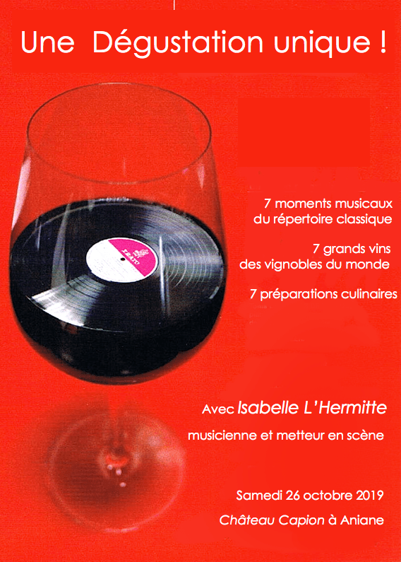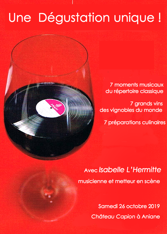 Le grand vin rouge du Château Capion est ici chez lui, la viole de gambe est son invité et les deux semble converser agréablement. Fraîcheur des parfums fruités de la syrah et lyrisme de la chaconne, rondeur du grenache et courbes sensuelles de l’instrument, souplesse des tanins du mourvèdre et de la corde frottée… Tout fonctionne en harmonie, ici, dans le cadre délicieusement baroque du château.