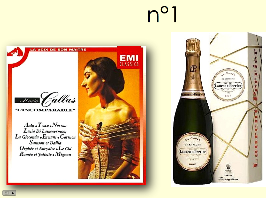 Les bulles scintillantes de champagne, la musique bourgeoise de Gounod, la voix tranchante de la Callas figure en quelque sorte une version élégante du savoir-vivre à la française.