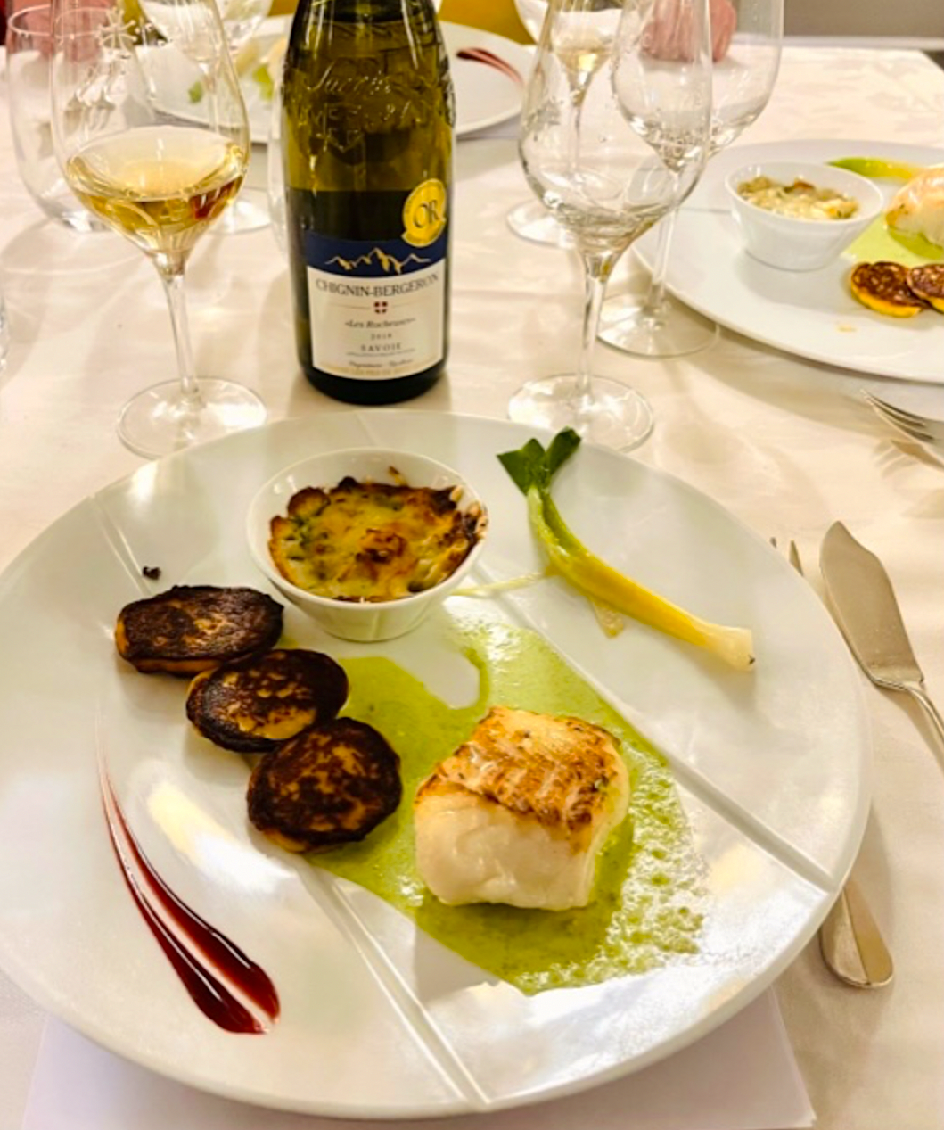 Si la couleur est franchement élégante (jaune pâle à reflets verts), le nez puissant aux notes de fruits blancs (cerise) et exotiques (litchi, mangues) et bonbons acidulés, la bouche reste simple, équilibrée, agréable minéralement tendue et parfaite pour débuter un déjeuner ensoleillé.
