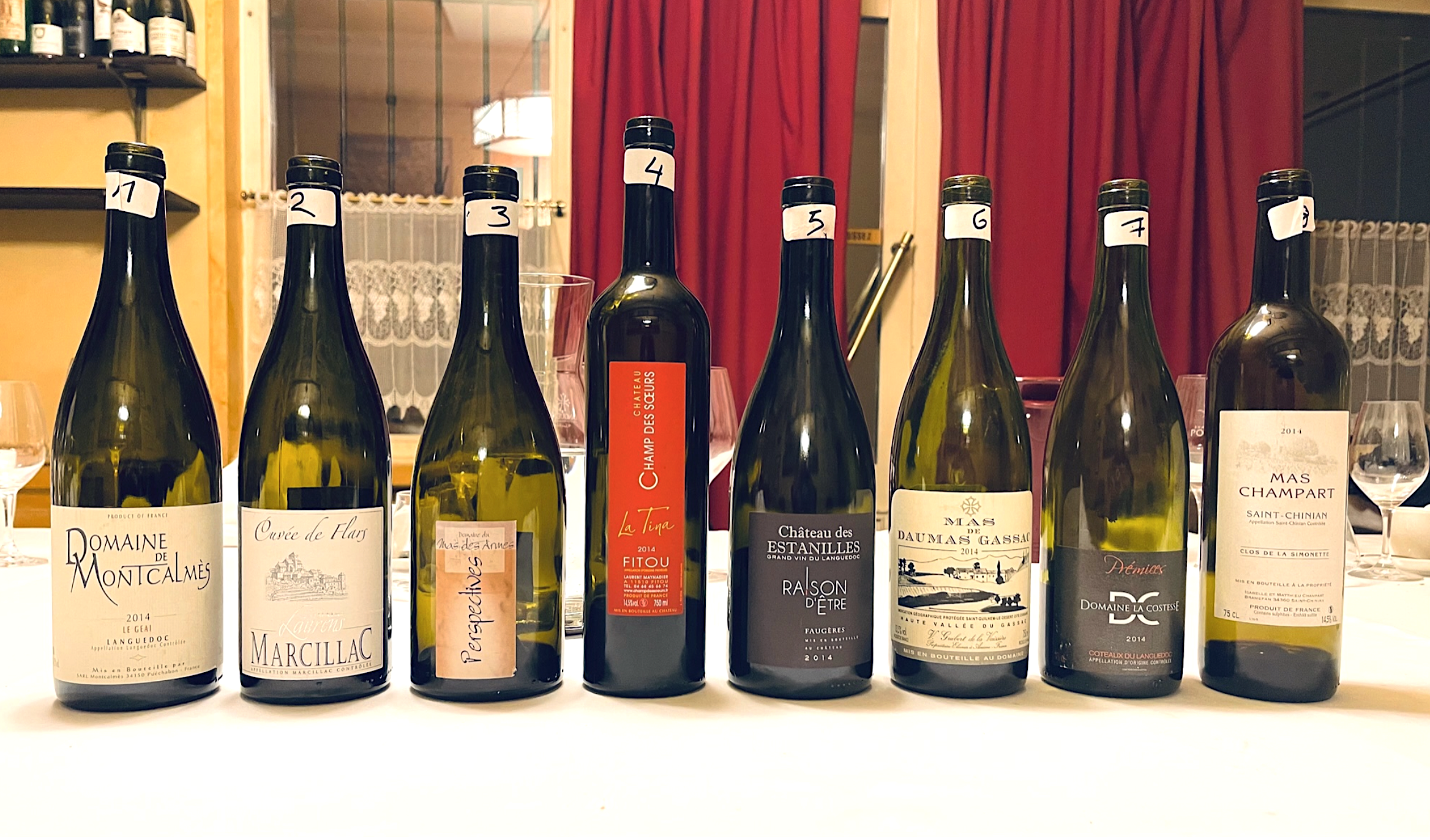 Voici donc une série en “aveugle » de vins rouges du Languedoc millésime 2014,