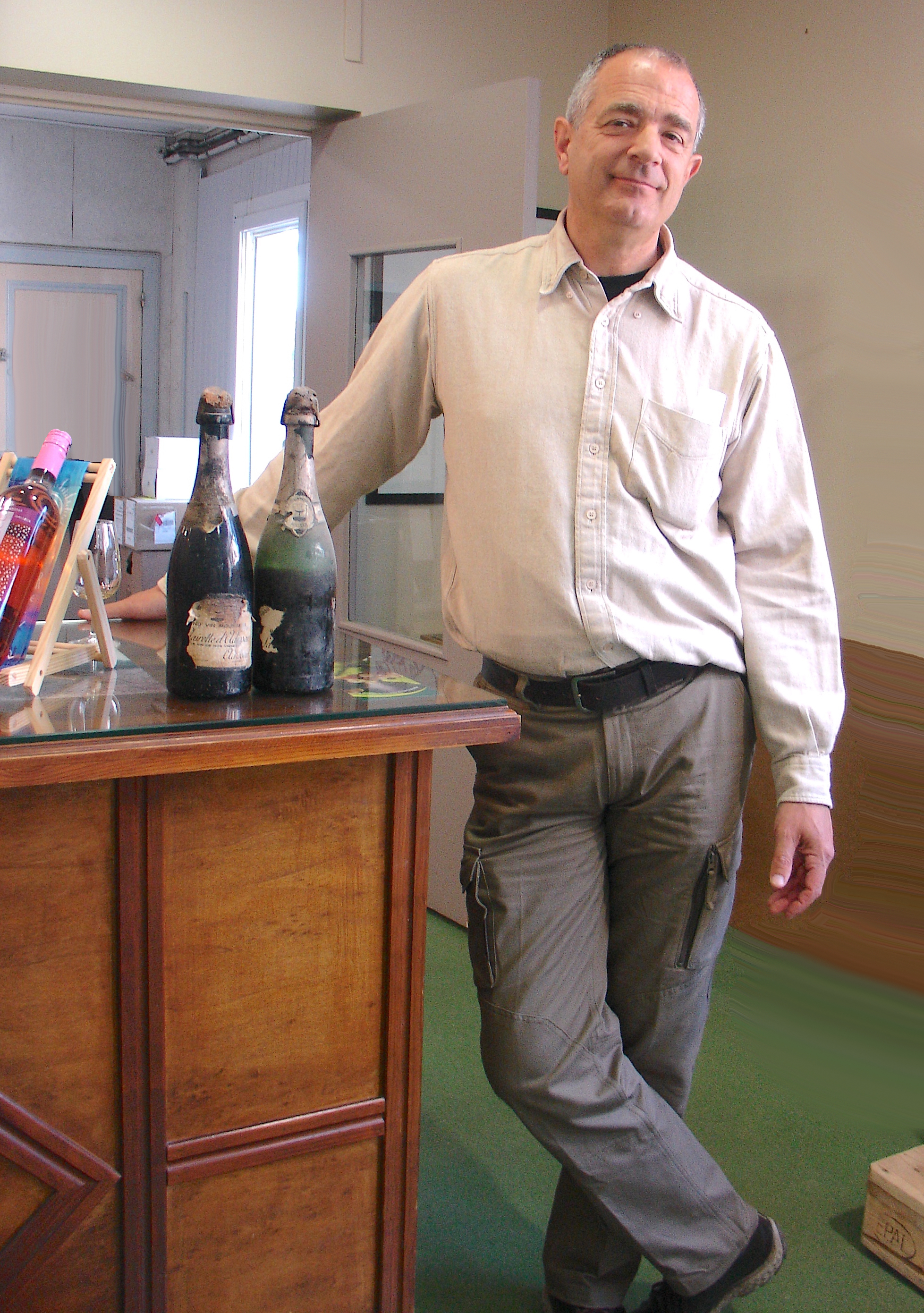 Jean Renaud heureux de pouvoir présenter deux bouteilles vénérables de Clairette du Languedoc de 1938 !
