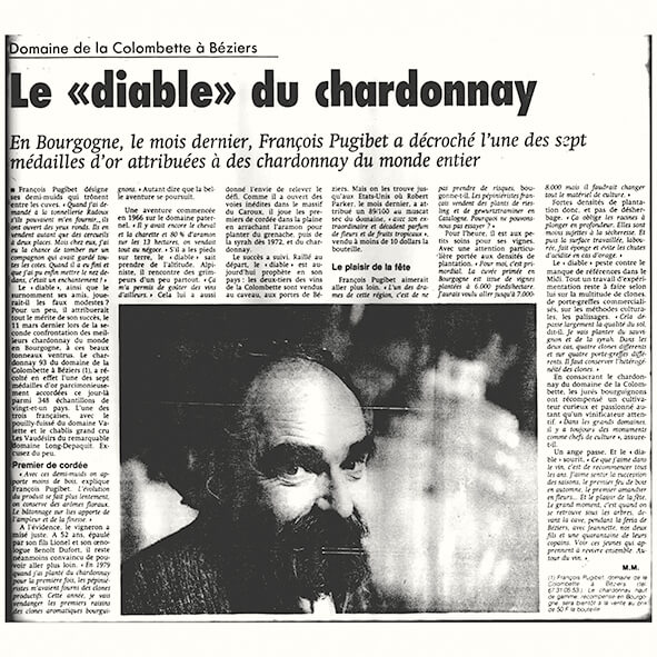 Peu après, un article de Midi Libre parlait de lui comme « le Diable du Chardonnay », ce qui bien sûr ne pouvait qu’aiguiser ma curiosité ! Quelques temps plus tard je me présentais au domaine…