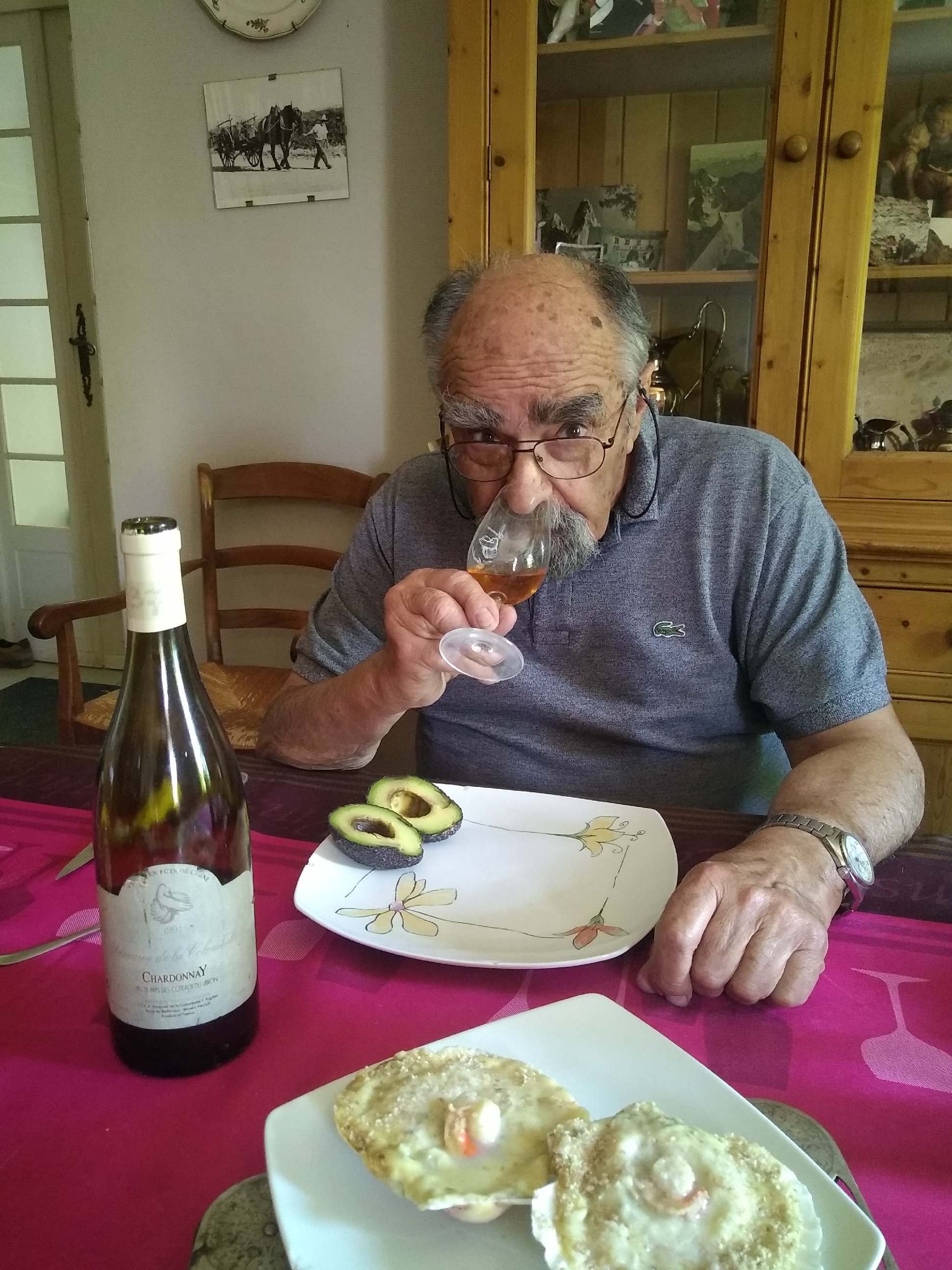 … et à François Pugibet qui goûte son Chardonnay « Demi-Muid » 1996 avec une certaine émotion.