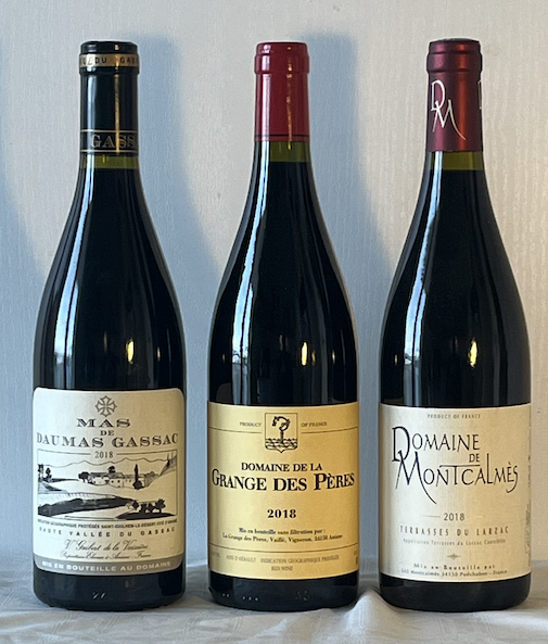 avec les IGP Pays d’Hérault (La Grange des Pères, Daumas Gassac…) IGP Pays d’Oc (G. Bertrand,